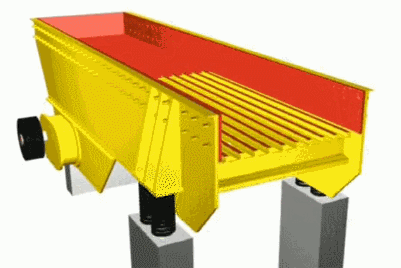 棒條振動給料機主要由一對性能參數(shù)相同的振動電機為激振源,當(dāng)兩臺振動電機以相同的角速度作反向運轉(zhuǎn)時,其偏心塊所產(chǎn)生的慣性力在特定的相位重復(fù)疊加或抵消。從而產(chǎn)生巨大的合成激振動力,使機體在支承彈簧上作強制振動,并以此振動為動力,帶動物料在料槽上作滑動及拋擲運動,從而使物料不斷前移而達到給料目的。當(dāng)物料通過槽體上的篩條時,較小料可透過篩條間隙而落下,不經(jīng)過下道的破碎工序,起到篩分的效果。