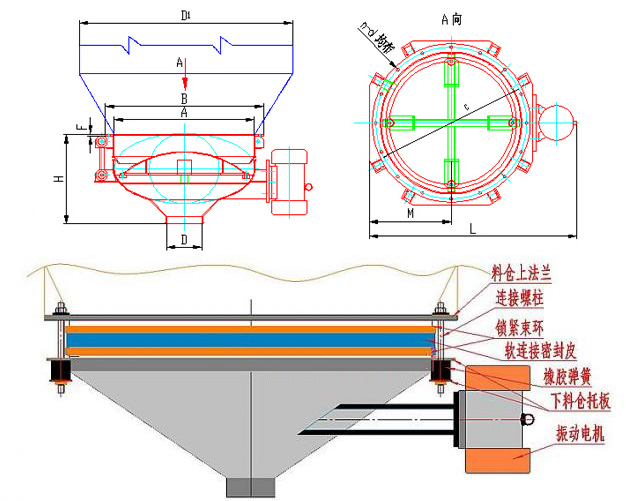 振動給料斗安裝注意:1、使用單位的料倉出口法蘭應和本機料倉接口法蘭尺寸一致。