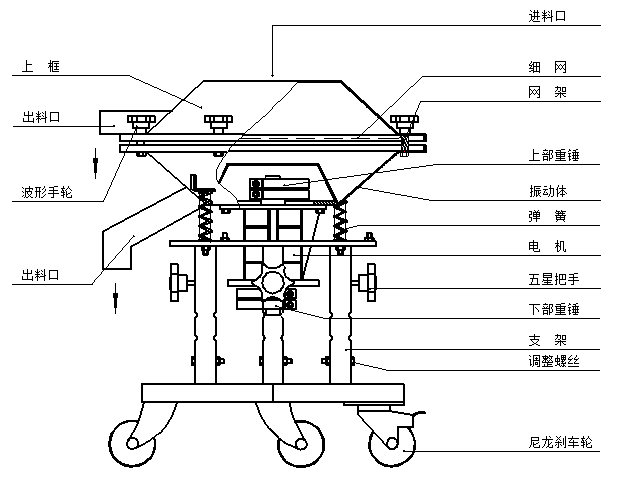 (8)把換好篩網(wǎng)的網(wǎng)架放到篩機(jī)相應(yīng)位置,各邊距離應(yīng)均勻,扣上上框,上緊束環(huán)即可。