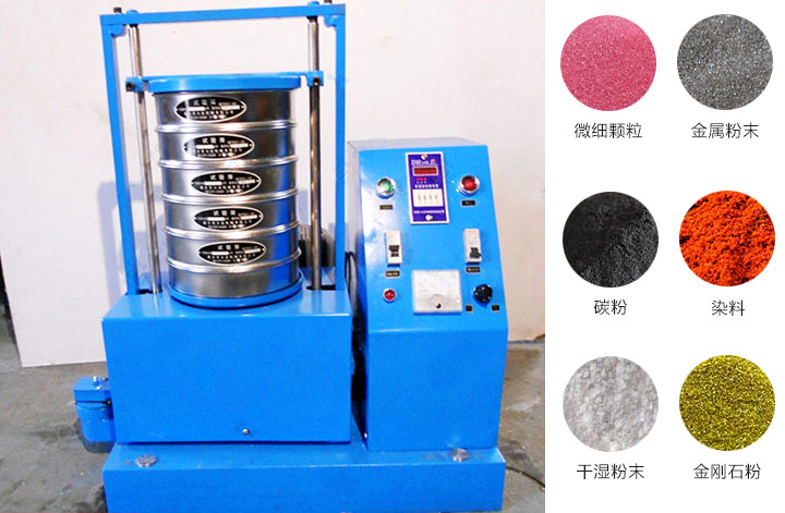 磁懸浮式試驗篩是以電磁加起振裝置作為振動源,通電后電磁裝置形成磁場,起振裝置懸浮在磁場中間,形成了上下高頻振動頻率,再通過底部托盤傳導到安放在托盤上的一套從粗到細排列的篩具上,使得實驗篩、分樣篩中的物料上下、左右往返振動及運動,使每層實驗篩、分樣篩內(nèi)只留下相同粒度的物料,達到了不同粒度的分離。